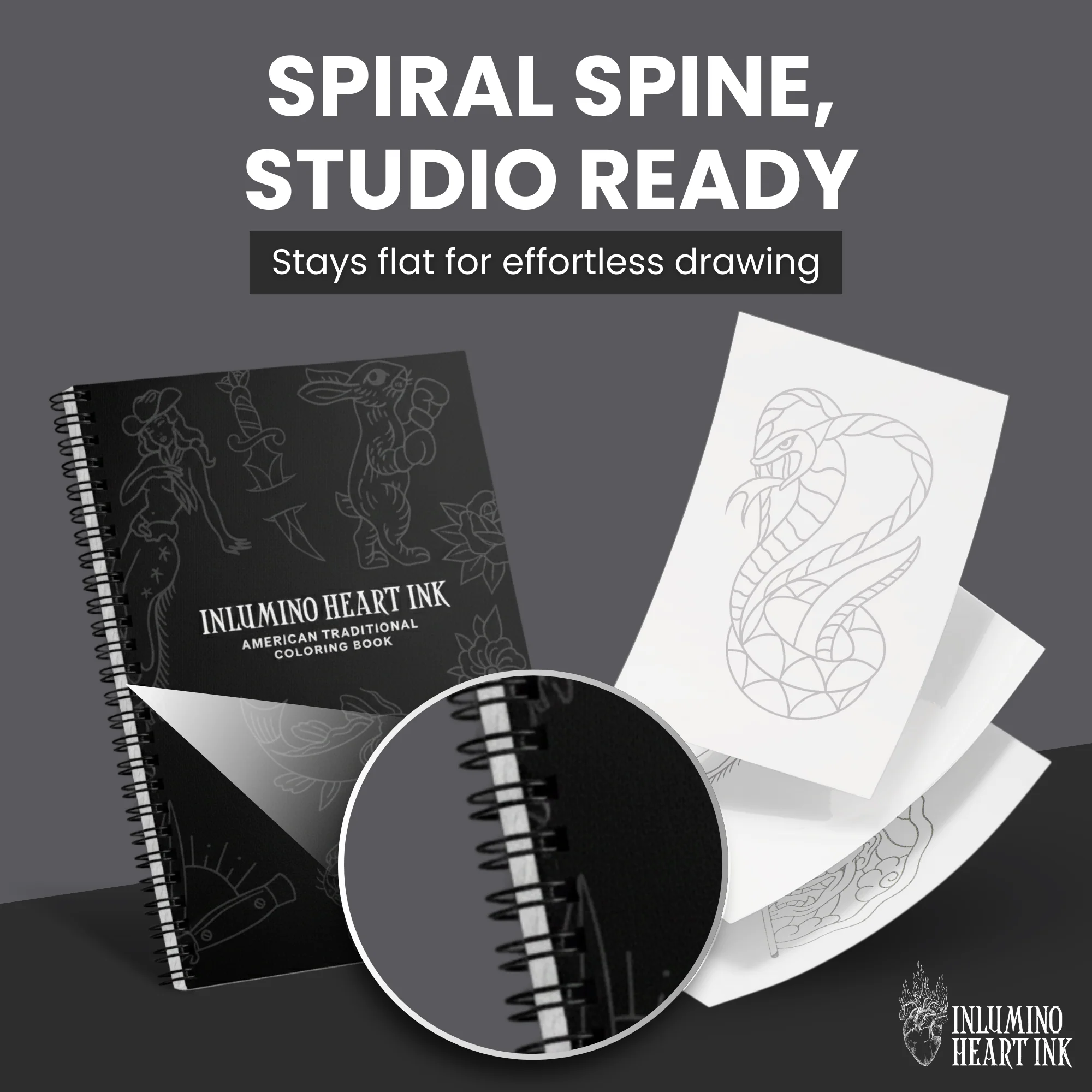 This compact 8.5" x 5.5" book features 40 bold, hand-drawn American Traditional designs—perfect for tattoo practice, art exploration, or relaxing creative time.